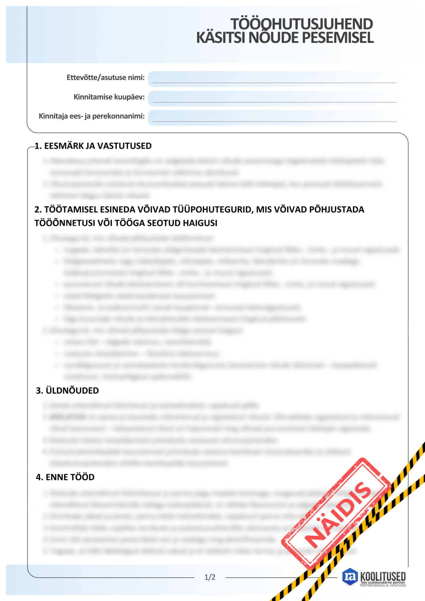 → Täidetud väljadega tööohutusjuhendi saate salvestada ja uuesti avada ning tekstiväljadel olevat teksti muuta.