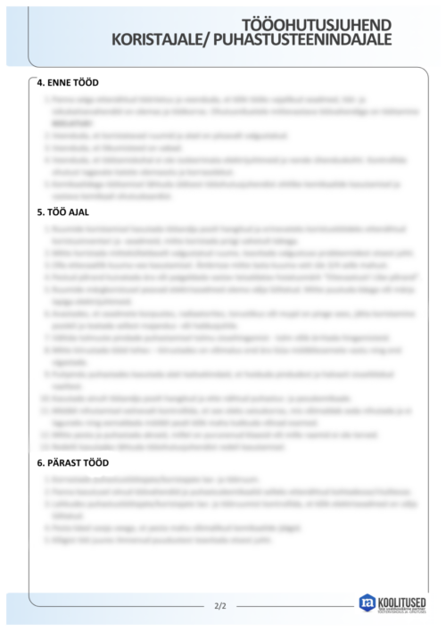 Tööohutusjuhend koristajale/ puhastusteenindajale